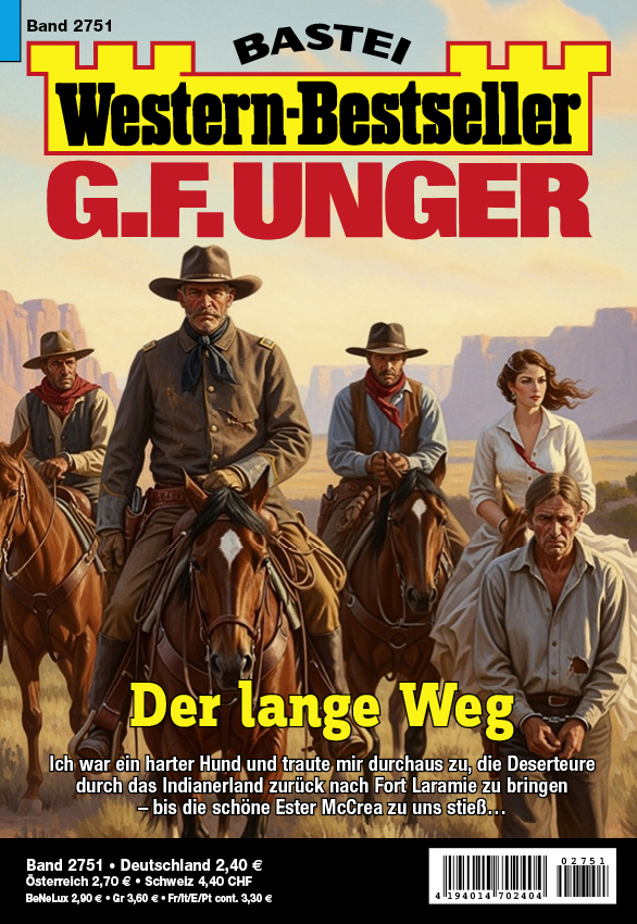 G. F. Unger, eine Legende der Westernliteratur, entführt Sie in das raue Leben der amerikanischen Pionierzeit. In seinen packenden Geschichten werden Ihnen die Herausforderungen durch die Natur, rücksichtslose Konkurrenten und die Auseinandersetzungen mit den amerikanischen Ureinwohnern lebendig geschildert. Sie werden hautnah miterleben, wie mutige Männer und Frauen Schritt für Schritt eine neue Welt erobern und das Errungene gegen alle Angriffe verteidigen müssen. Mit über 800 Romanen hat G. F. Unger den Pionieren des amerikanischen Westens ein grandioses Denkmal gesetzt und ihre Leistungen in allen Facetten beschrieben. Die G. F. Unger Sonder-Edition ermöglicht es Ihnen, diese einzigartigen Werke erstmals in ungekürzter Form zu genießen.