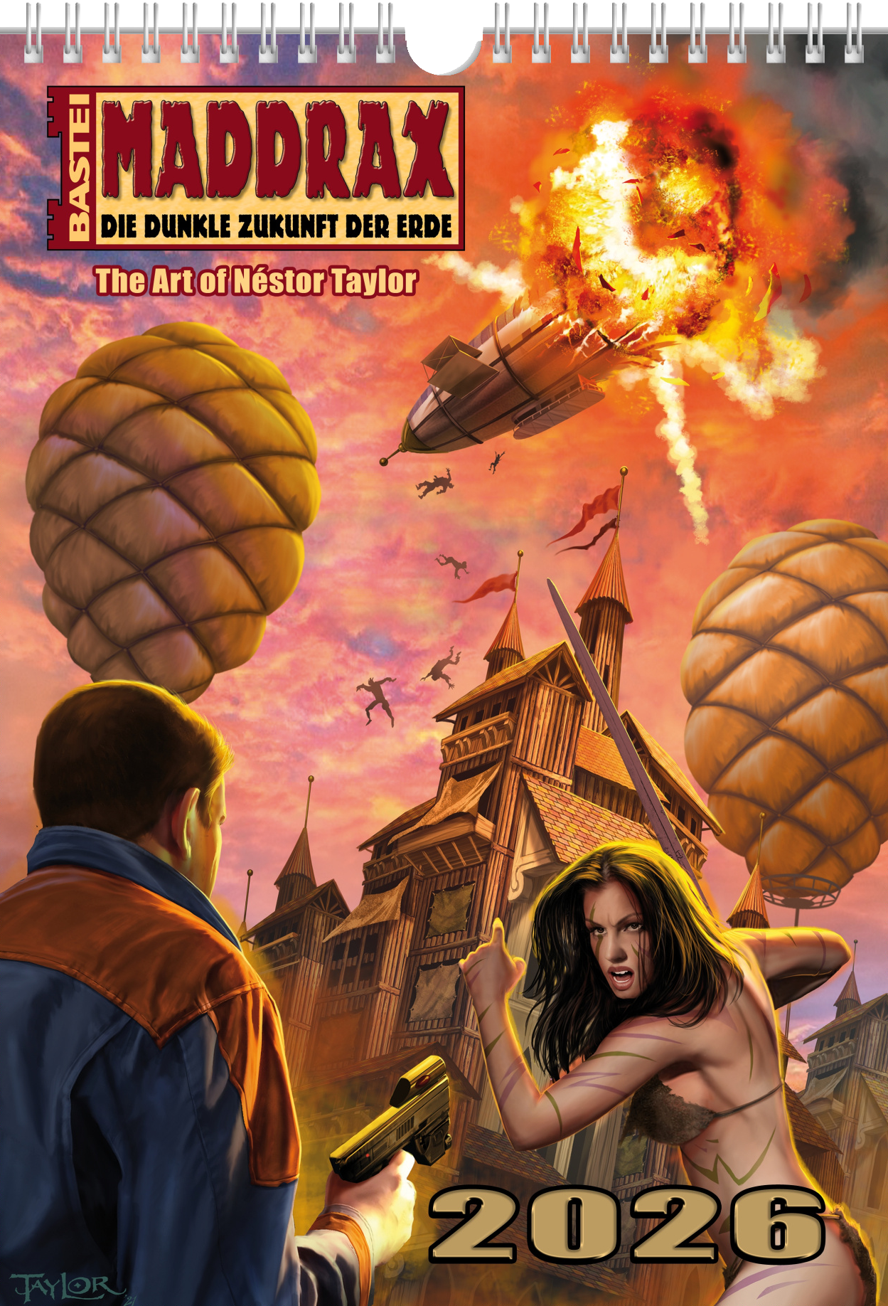 Tauchen Sie ein in die faszinierende Welt von MADDRAX und lassen Sie sich Monat für Monat von den atemberaubenden Cover-Arts des beliebten Künstlers Néstor Taylor verzaubern. Unser MADDRAX-Wandkalender für das Jahr 2026 ist nicht nur ein unverzichtbares Sammlerstück für alle Fans der Serie, sondern auch ein wundervolles Dekorationsstück für Ihre Wand.